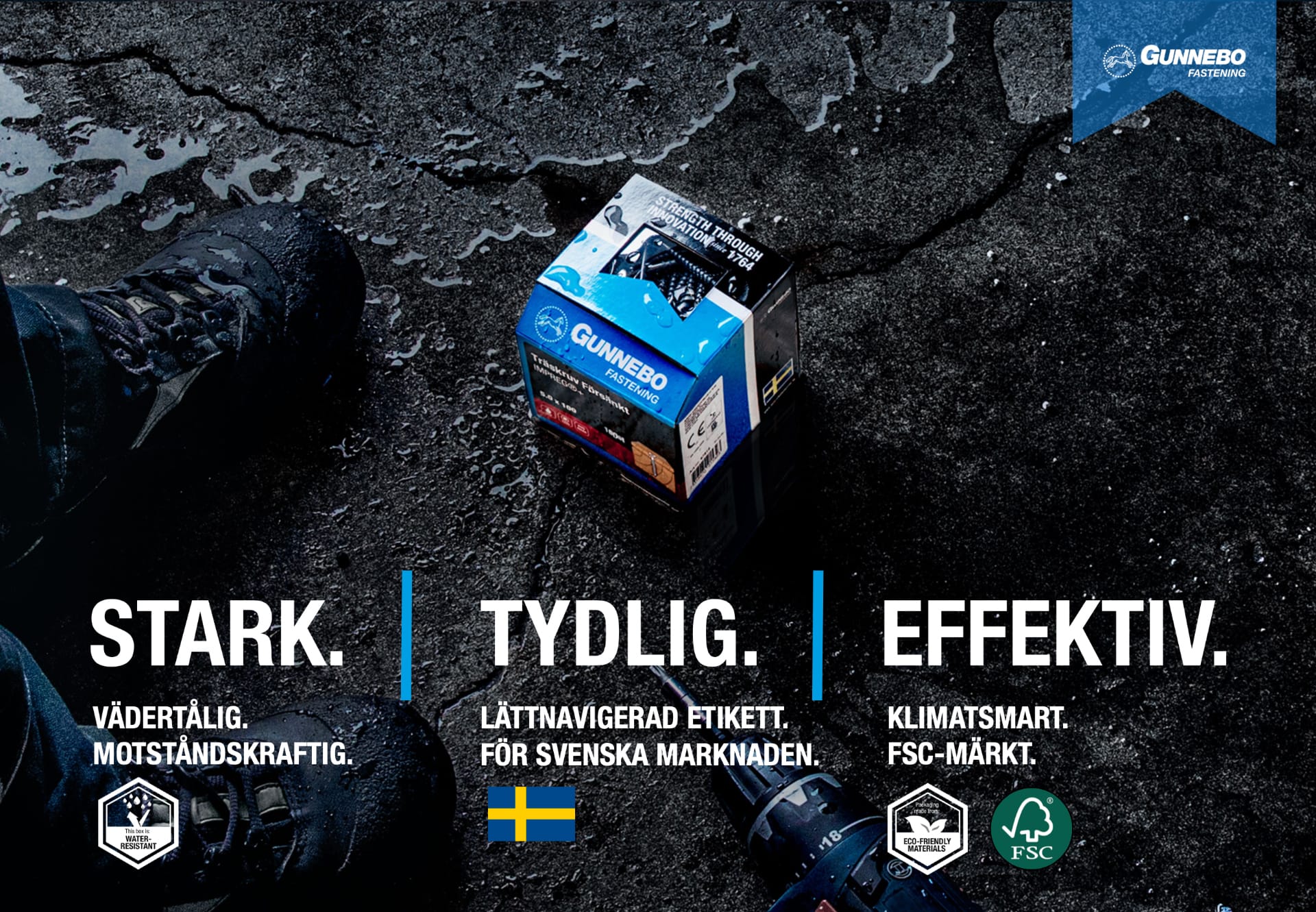 Nu får alla våra infästningslösningar ny förpackning. Det är lätt att särskilja på förpackning och produkt. Men för oss är förpackningen lika viktig som produkten- förpackningen är en del av produkten. Vi är därför extra stolta över att nu kunna presentera en stark och mer vattentålig förpackning som klarar tufft svenskt klimat. Dessutom har den en tydligare etikett och är effektivare både för dig som användare och för miljön.